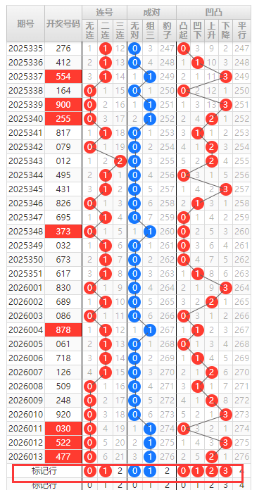 通过走势图可以看出近30期连号成对凹凸走势变化