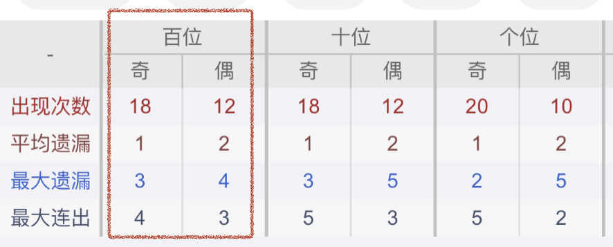从近30期数据我们可以看出百位1是热码,这个冷热码数据我们结合之后的分析再利用它