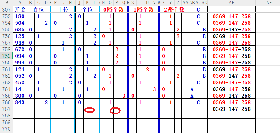 如上图56,012路分析0路出号的概率还是很大,本期可以从0路号入手做胆0369中选;看好369胆码。