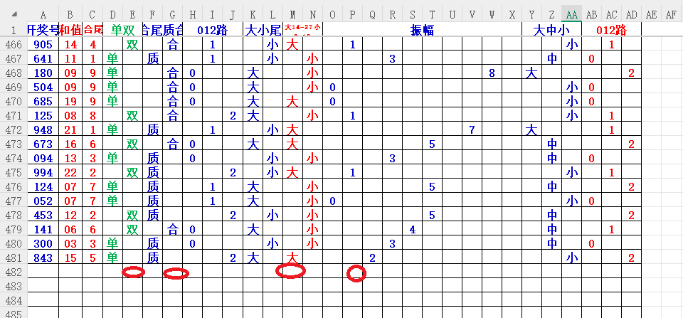 如上图2,大中小分析来看,中小数尾3456尾,可以考虑定3456尾。