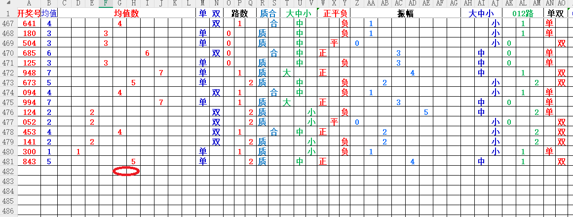 如上图1,大中小分析,均值小中大数比较好,也就是 3456 均值最好,重点:45。