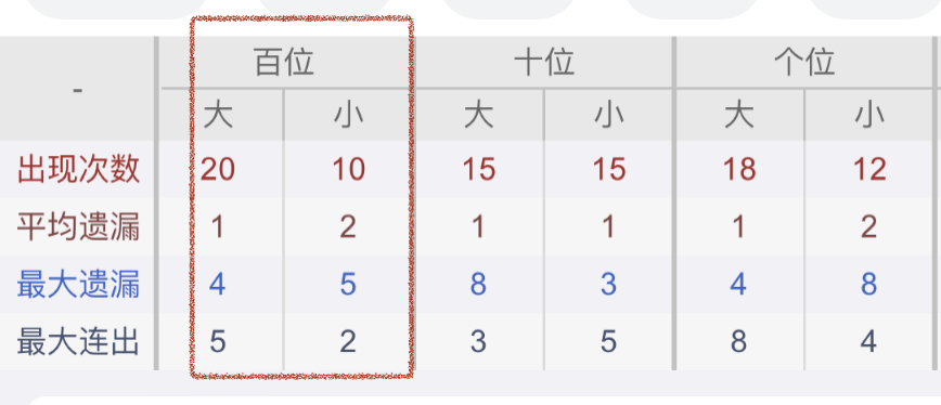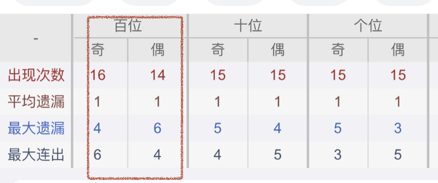 从近30期数据我们可以看出百位1是热码,这个冷热码数据我们结合之后的分析再利用它