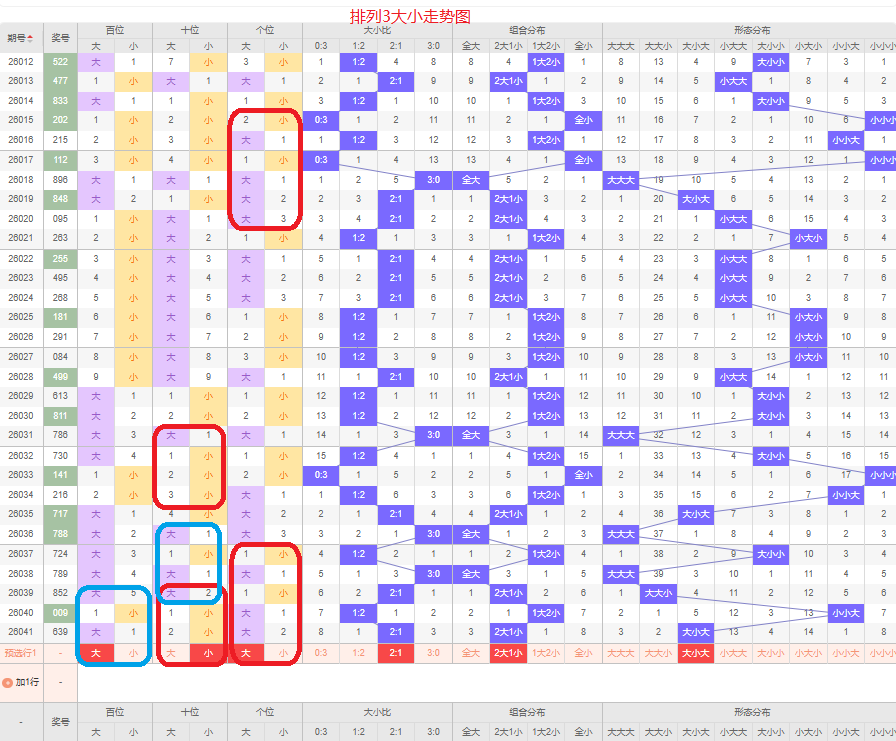 上一期012路个数比为3:0:0,是全0路的号码组合,上期断掉12路的号码,本期的号码以两路的组六组合号码为主,本期0路的号码可能会出现,本期应该会有1路的号码,本期以01的组六组合号码为主,防02路和12路的组合,侧重01路的号码组合。