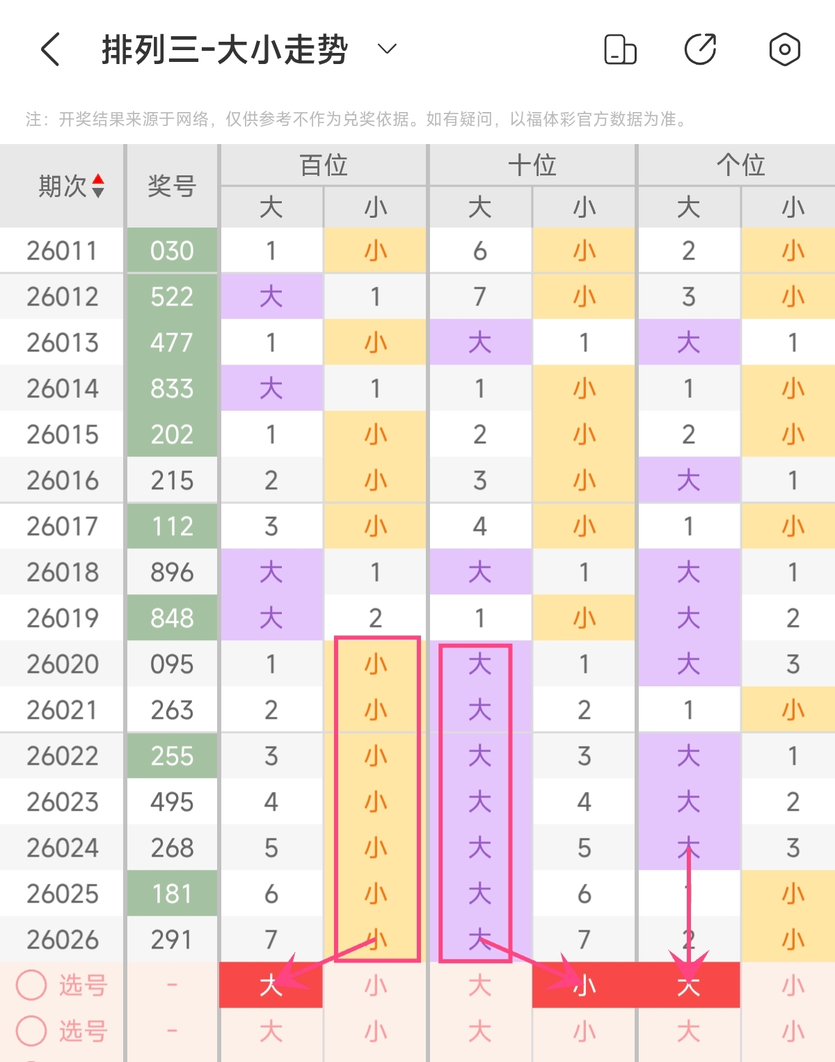 首先让我们回顾一下上期排列三第2026026期开奖号码为291,为组六形态,大小比为1:2,奇偶比为2:1,跨度为8,和值为12。