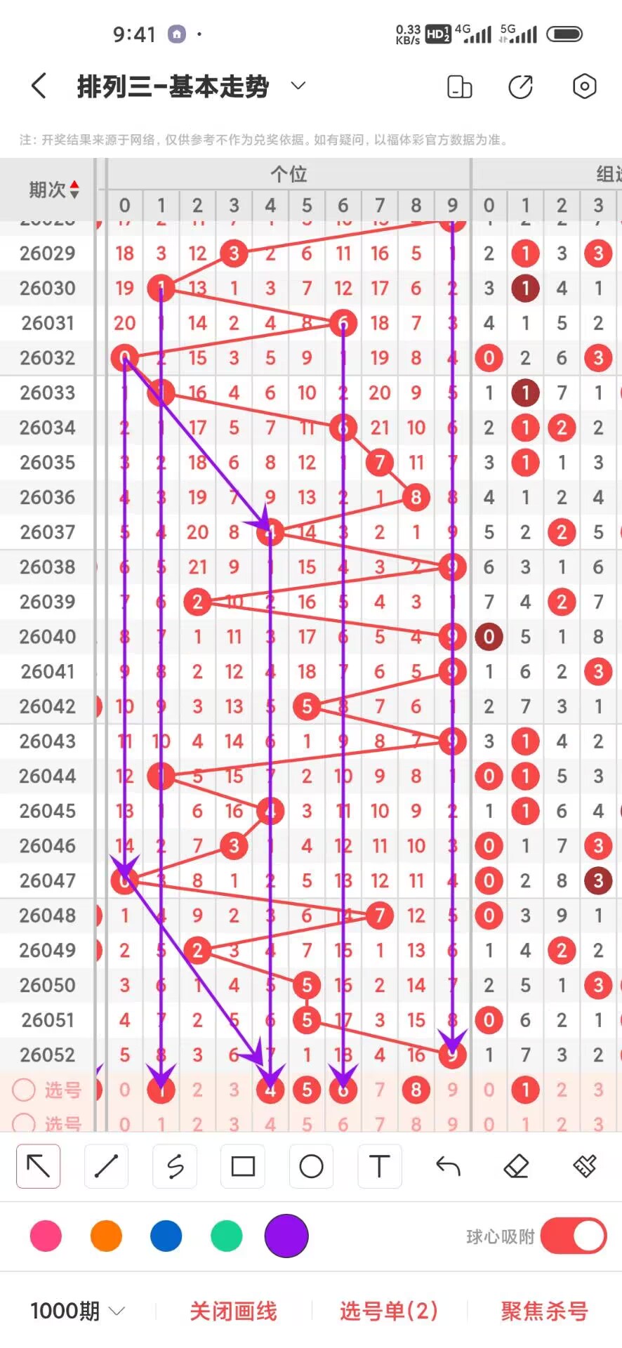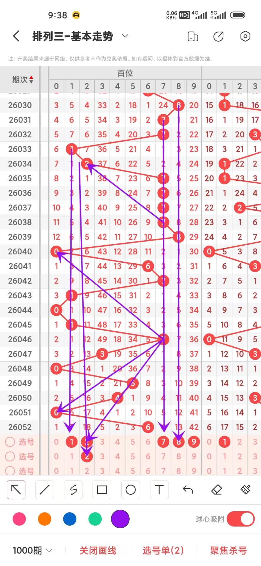 2026053期,上期个位开出奇数9,我们通过走势图来看500期,012路中平均遗漏和最大连出的数据,其中0路平均遗漏总数是40次,0369分别遗漏11,7,10,12次,这几路号码3遗漏最小,我们在来看0路号码的最大连出,0369分别在500期内最高是3连,分别是2,3,2,2,再来看1路号平均遗漏总数27次,147分别遗漏是9,9,9次,在看1路号最大连出3,147分别是2,3,3,再回过头来看2路号平均遗漏总数是27,258分别遗漏是9,9,9次,2路号最高连出是3,258分别是2,3,3,我们再来看个位中目前冷号阶段的号码是68,在热号阶段的是大号,通过上面的分析我们可以做出以下判断,个位今天看24579,防冷号大号回补具体看下面走势图