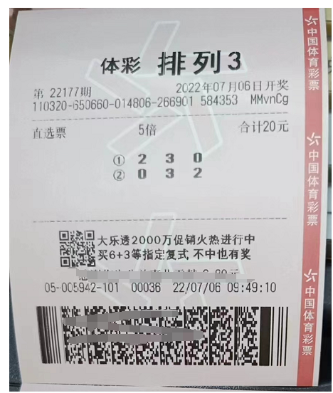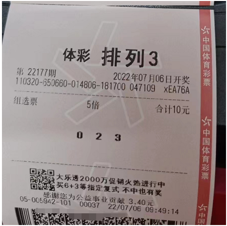 当然,任何时候不能忘记附带一张组选票,组选票其实就是后悔药,买一张组选票最少中出组选不后悔,大家看票样。