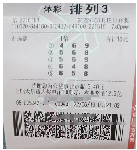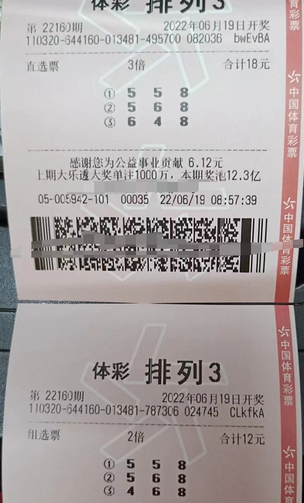 当然还有组选6的模式,这样的票也是不能放弃的,我们继续分享一张单式票样。