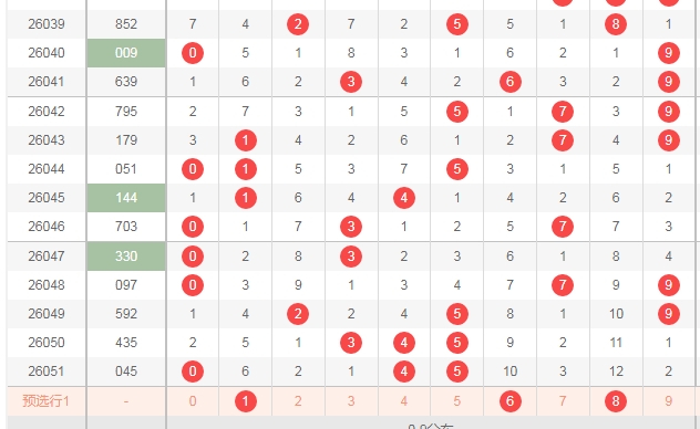 上期开奖号码045,重复两个数字,这个还是有点难度的。