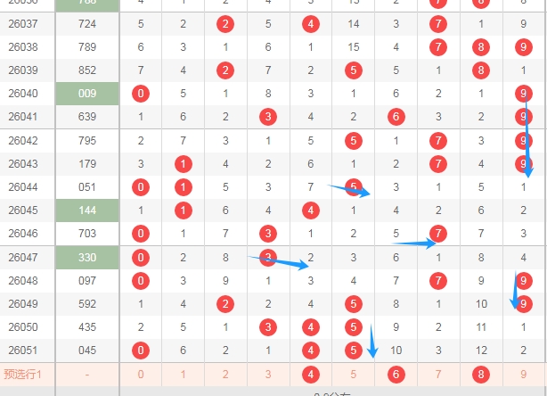 上图是体彩排列三开奖号码走势分布图,我在上面走势图中标注出来的数字6789这个区域一共是4个数字,这4个数字到本期又是遗漏了两期,最近几期这个区域的数字出号码也不多,那么本期这个区域的数字6789至少可以关注出一个或者两个吧。