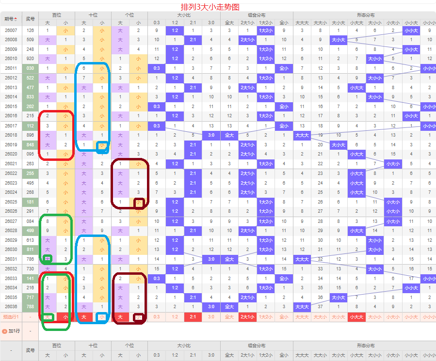 十位近两期是小号码,侧重奇数的号码,侧重大号码,侧重0路和2路的号码,侧重号码358。