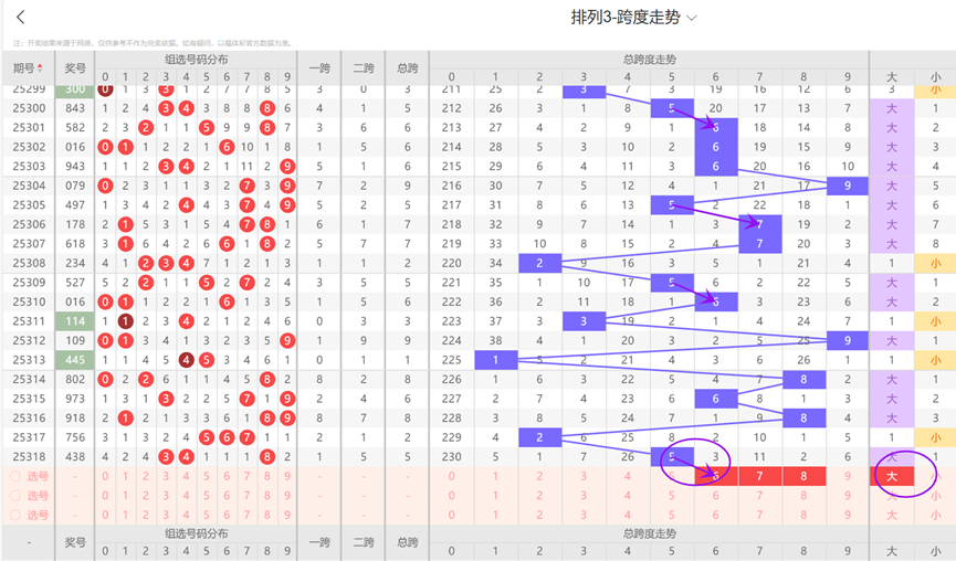 龙本龙-排列3-第319期定位分析,跨度看好大数号码