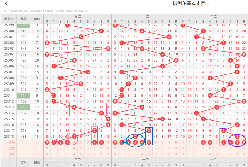 5、综上所述排列3-第319期定位推荐信息如下: