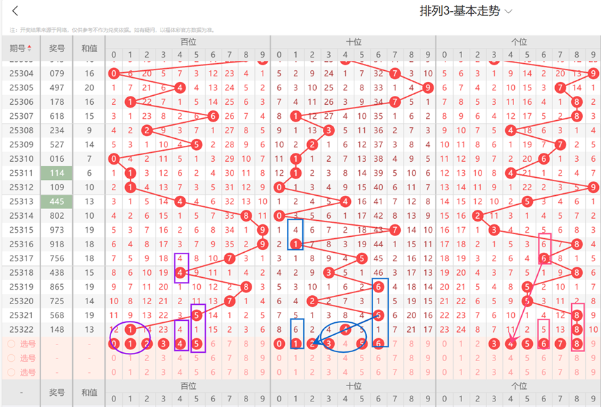 5、综上所述排列3-第323期定位推荐信息如下: