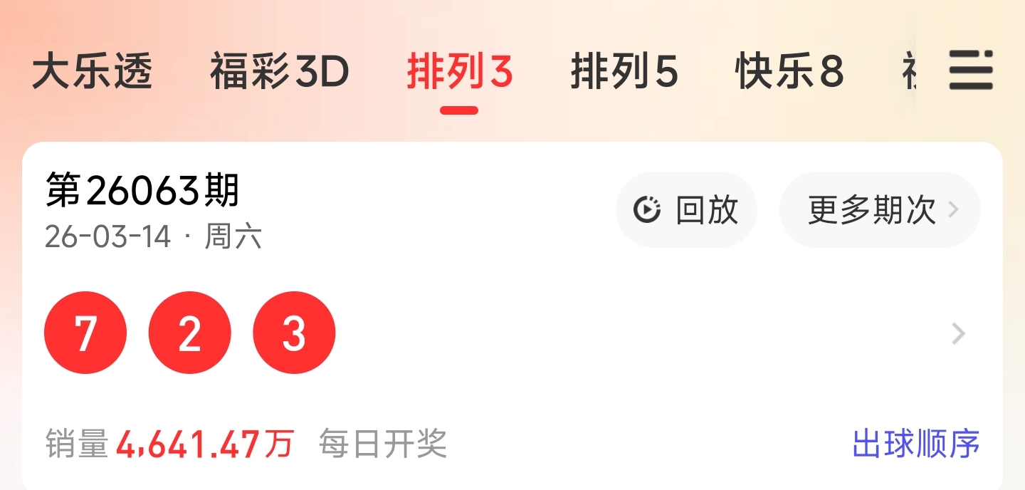上期排列3开出723,和尾为2,跨度为5,奇偶比为2:1,大小比为1:2012路个数对比为1:1:1