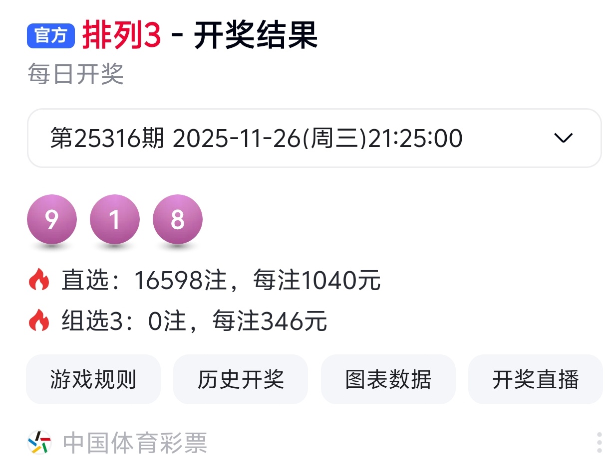 25339期命中全部号码 9,0,0