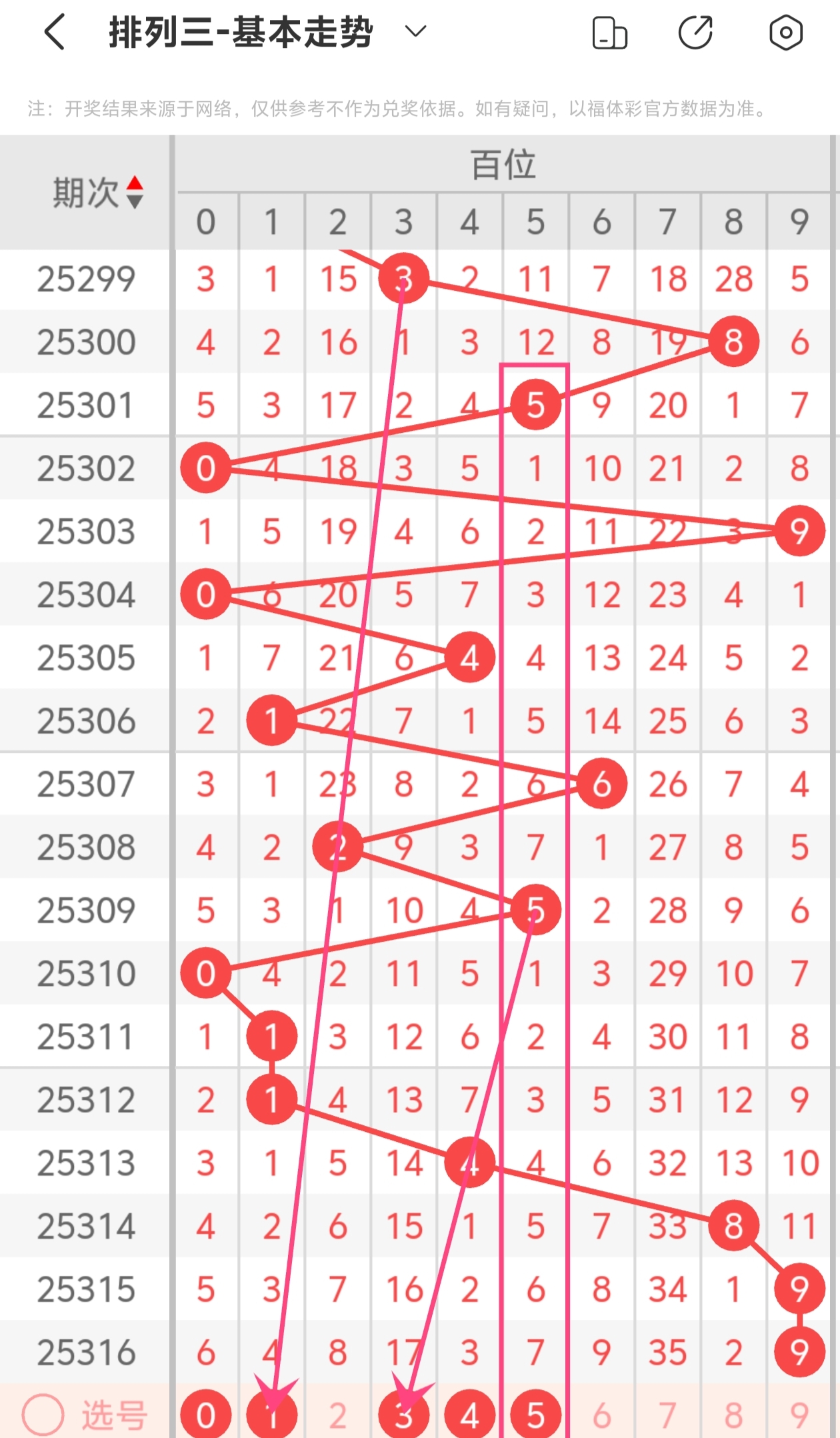下面是体彩排列3的百位走势图分析