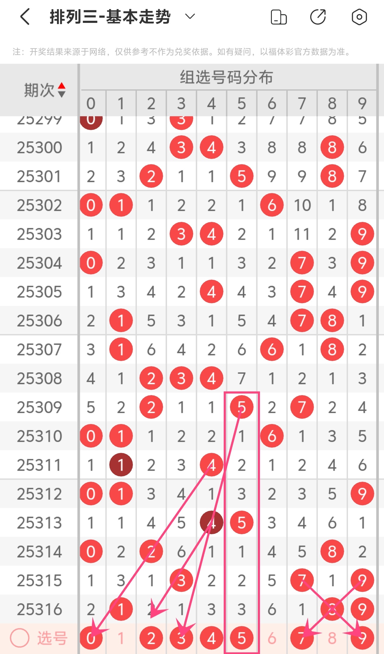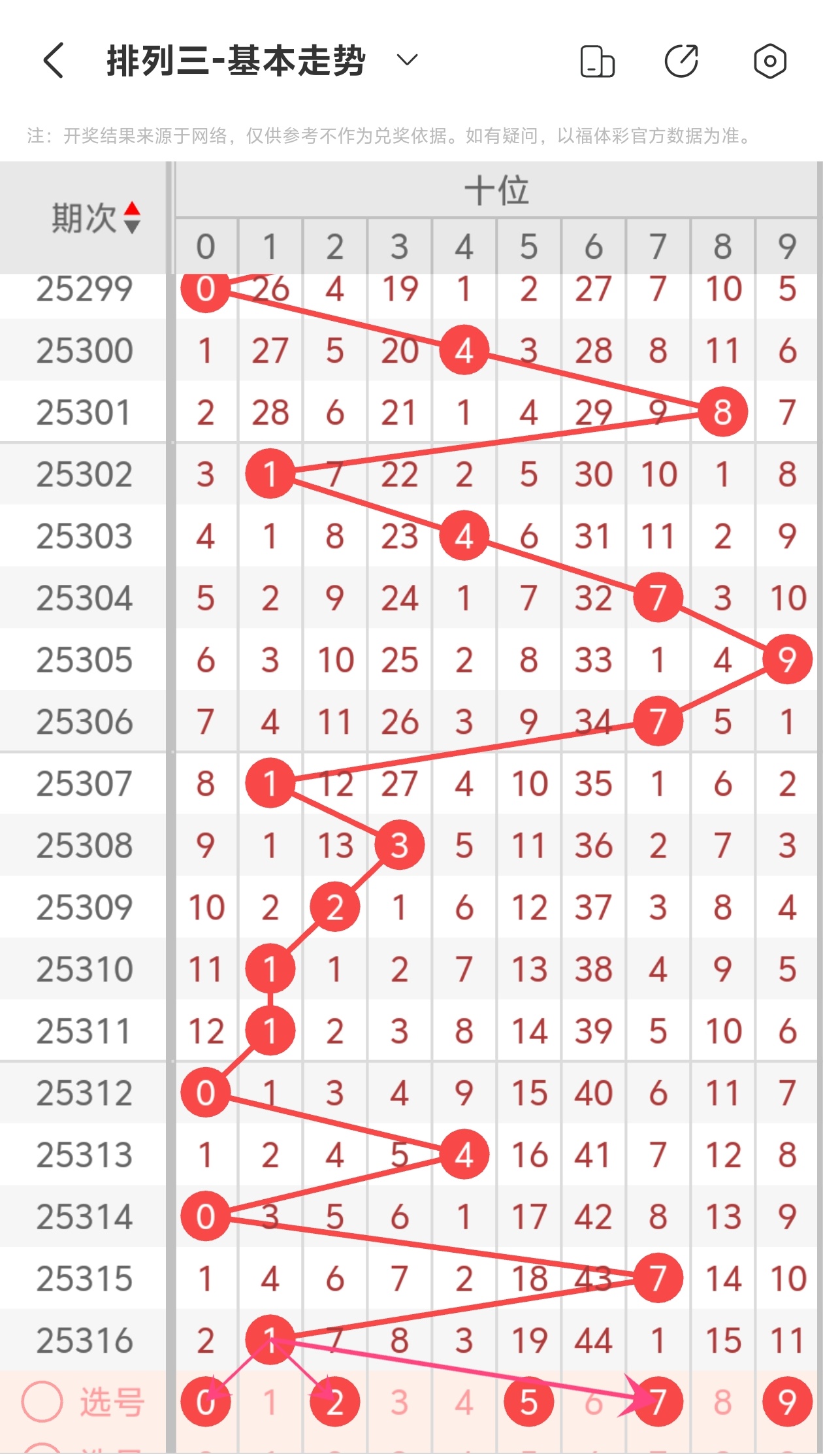 下面是体彩排列3的个位走势图分析