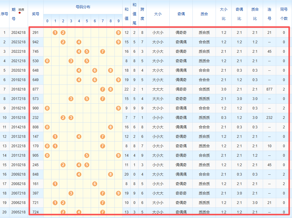 1、统计往年同期开奖号码