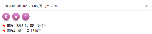 26086期命中全部号码 3,3,4