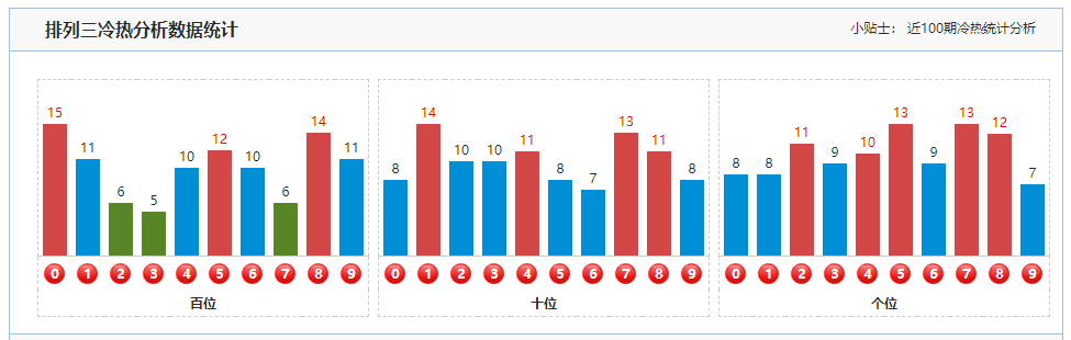 通过以下数据分析可以看出近百期定位冷温热号分布