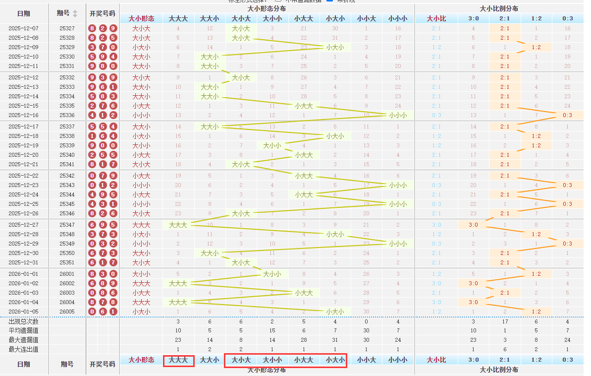 排列三大小号码分析数据统计图表
