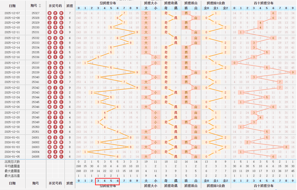排列三跨度分析数据统计图表