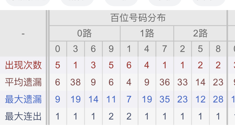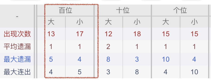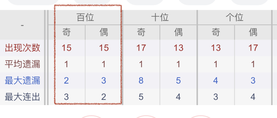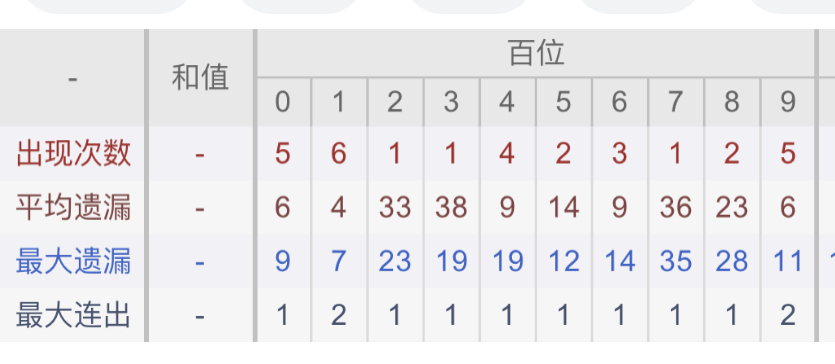 从近30期数据我们可以看出百位0,1是热码,这个冷热码数据我们结合之后的分析再利用它