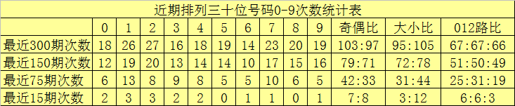 个位分析:最近300期奖号由冷到热表现为:923,624,026,128,529,830,433,2734,339次,该位号码奇偶比为153:147,大小比为140:160012路比为112:95:93