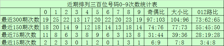 百位分析:最近300期奖号由冷到热表现为:322,0926,4528,6730,2835,140次,奖号奇偶比为146:154,大小比为149151012路比为104:98:98