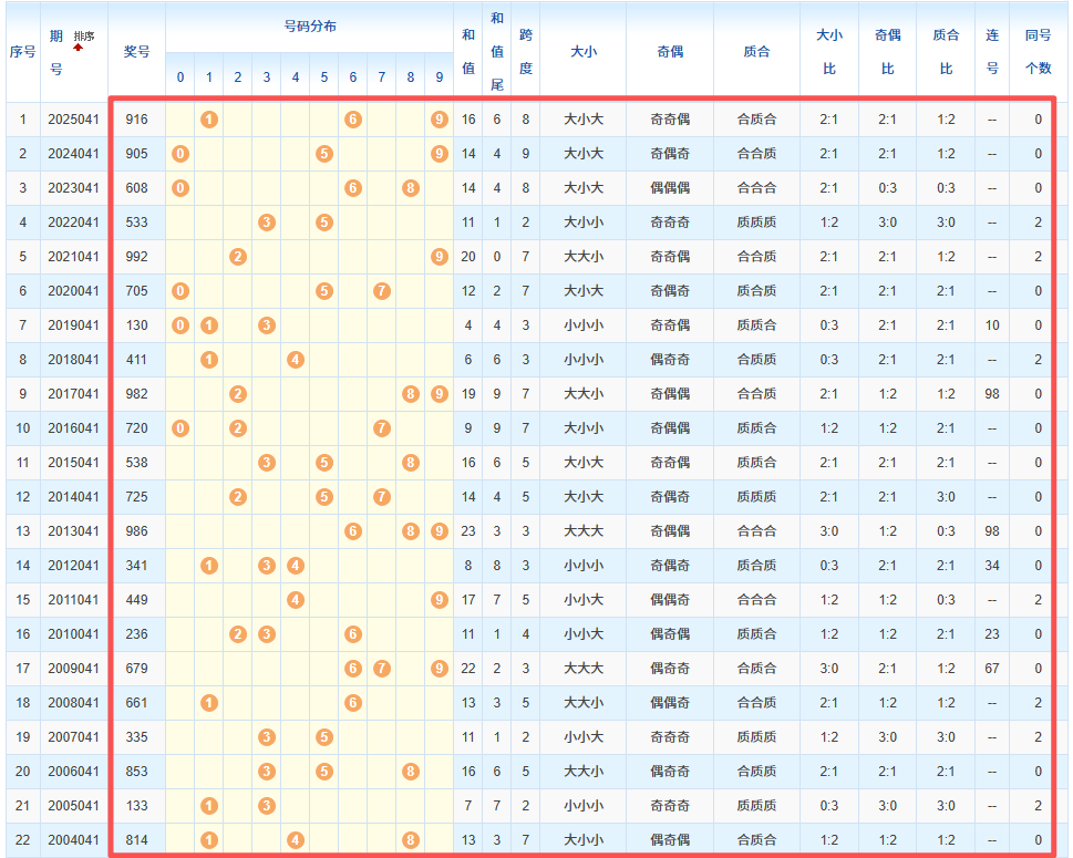 1、统计往年同期开奖号码