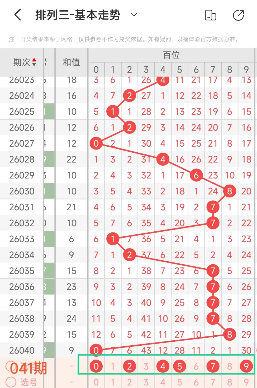 金莱排列3第041期:本期和值主看单数