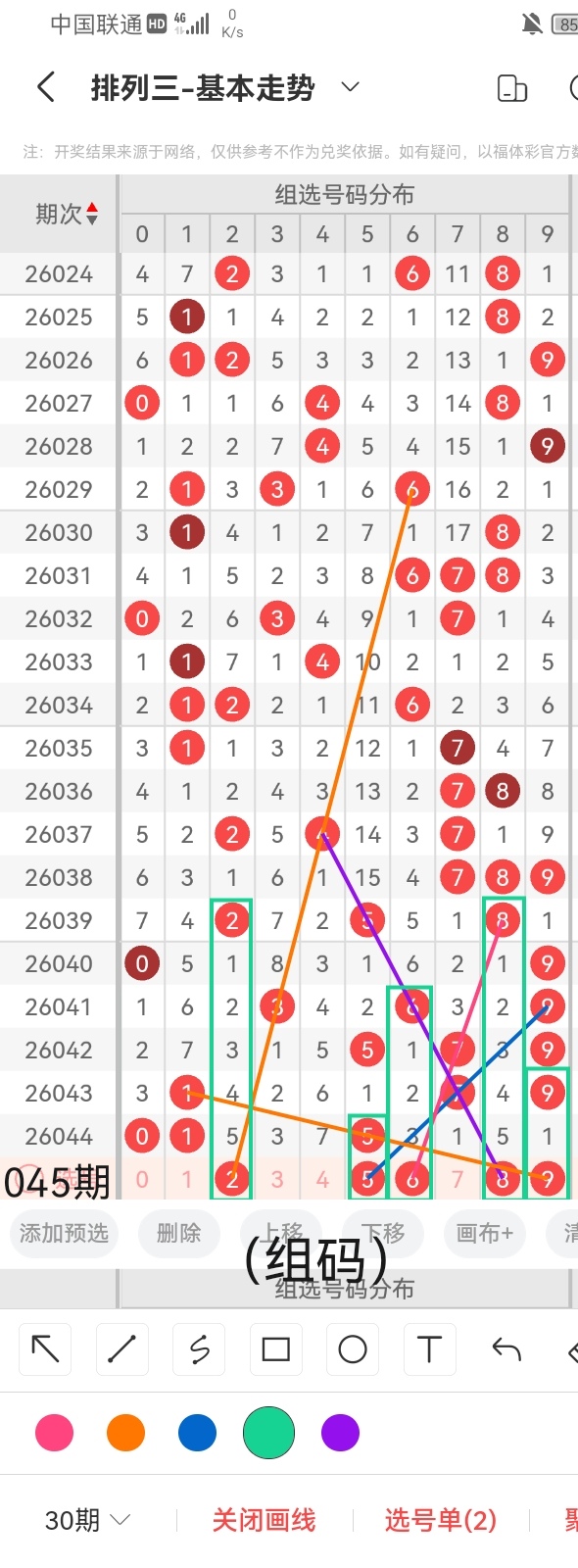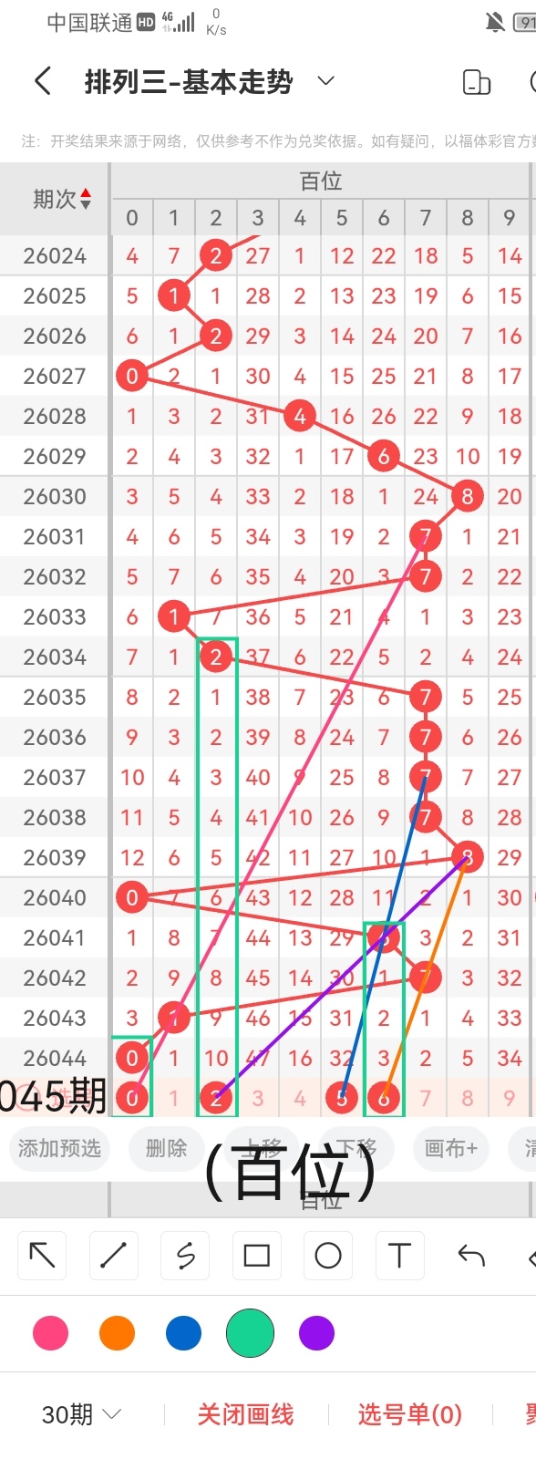 通过以上对上期的简单回顾,下面进入体彩排列三第2026045期(下面简称本期)的选号分析: