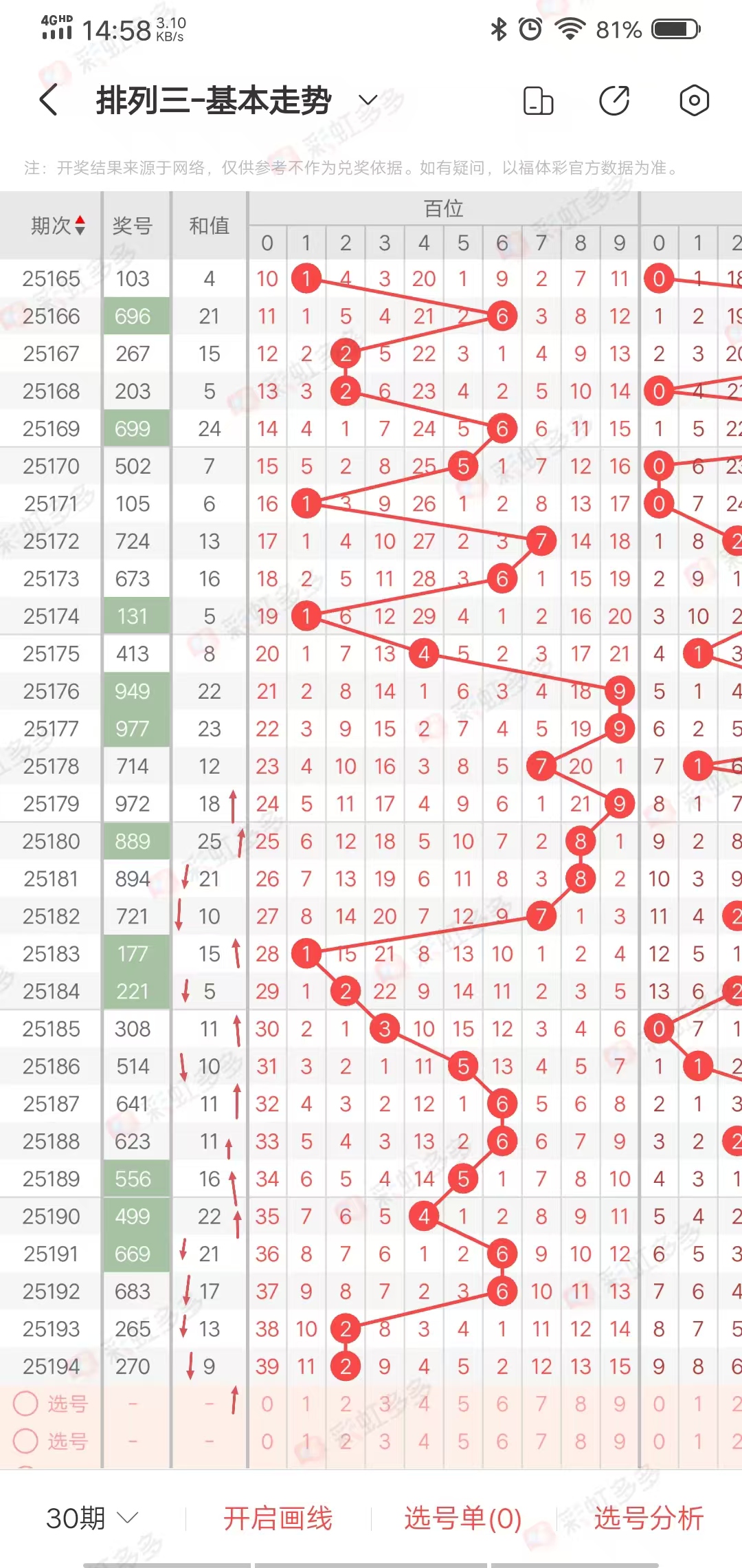 杀神排列三25195期走势分析-本期重点关注和值小幅度上升