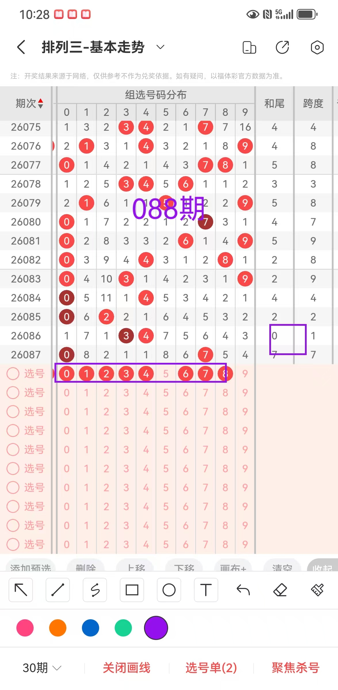 体彩排三088期,专区上期中金胆,中7码,可惜了060,本期继续加油