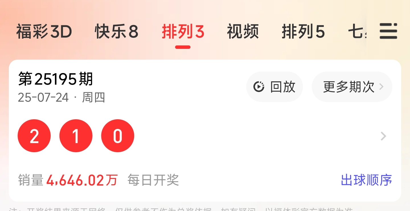 关于2025196期排列3分析
