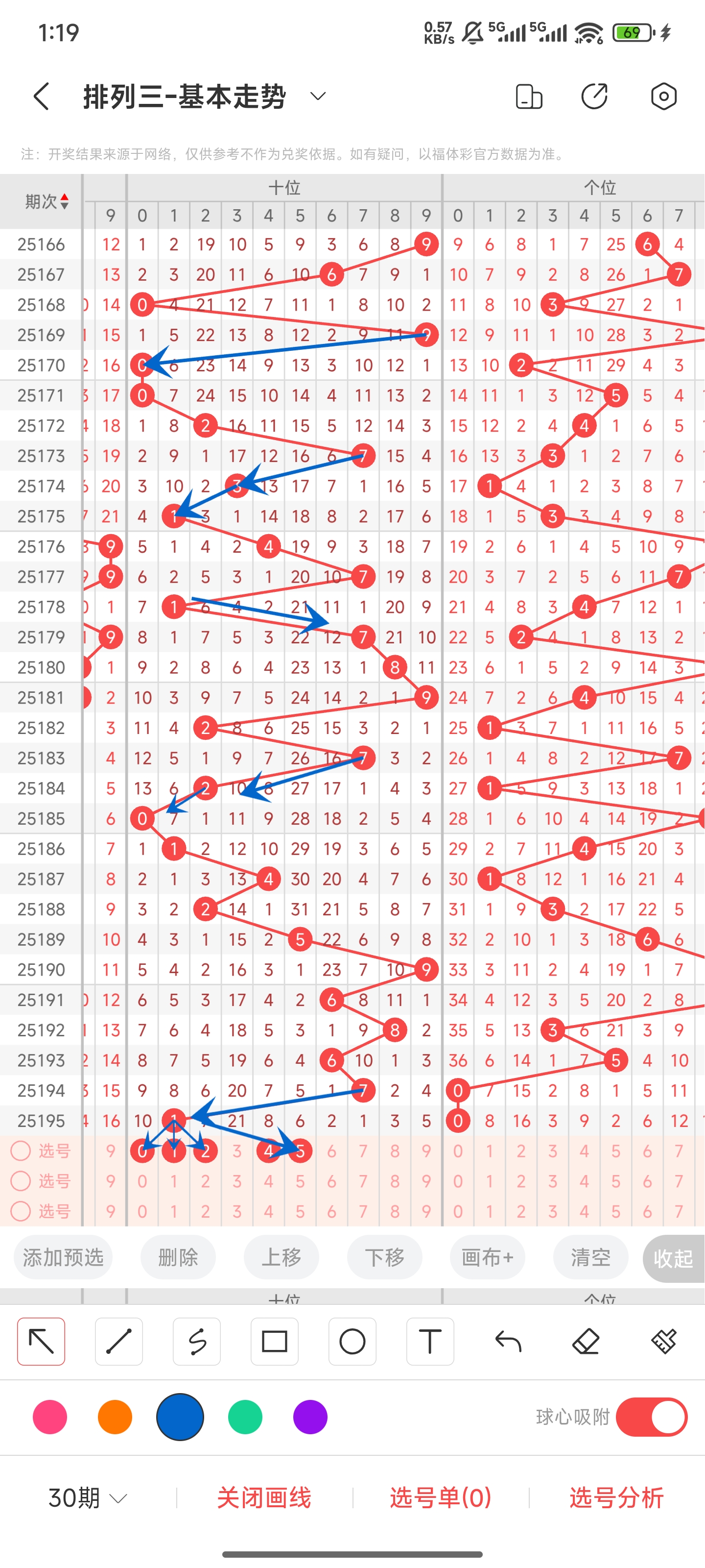 上期开出的是0号,往前一期也是0。0号是属于最冷的号进行了回归。遗漏了36期后回归。并且进行了连续两期回补。那么本期应该不会再继续开出了。通过分析走势图,我们可以看到走势都比较有规律的,基本上都是左右左右这样子走。目前趋势是往左的我们可以,关注一下距离较近和不太远的号,例如01,02,03,04,05。那综上所述本期可能开出01,02,03,04,05等数。