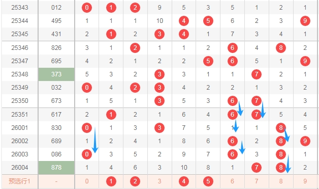 大家好,本人蔡楚门,一个玩彩十几年的老彩民,现在来本平台分享一下本人的对彩票的分析思路和看法,希望本人的文章能够给你们带来灵感和好的运气,首先感谢一起彩提供一个好的平台,下面走势图都是用一起彩平台的走势图,接下来分析一下体彩排列三第2026005期号码思路。下面文章中名词解读,合数为0 4 6 8 9,质数1 2 3 5 7,奇数1 3 5 7 9,偶数0 2 4 6 8,1路球数字1 4 7,2路球数字2 5 8,,0路球数字0 3 6 9。下面分析是从左到右定位分析。