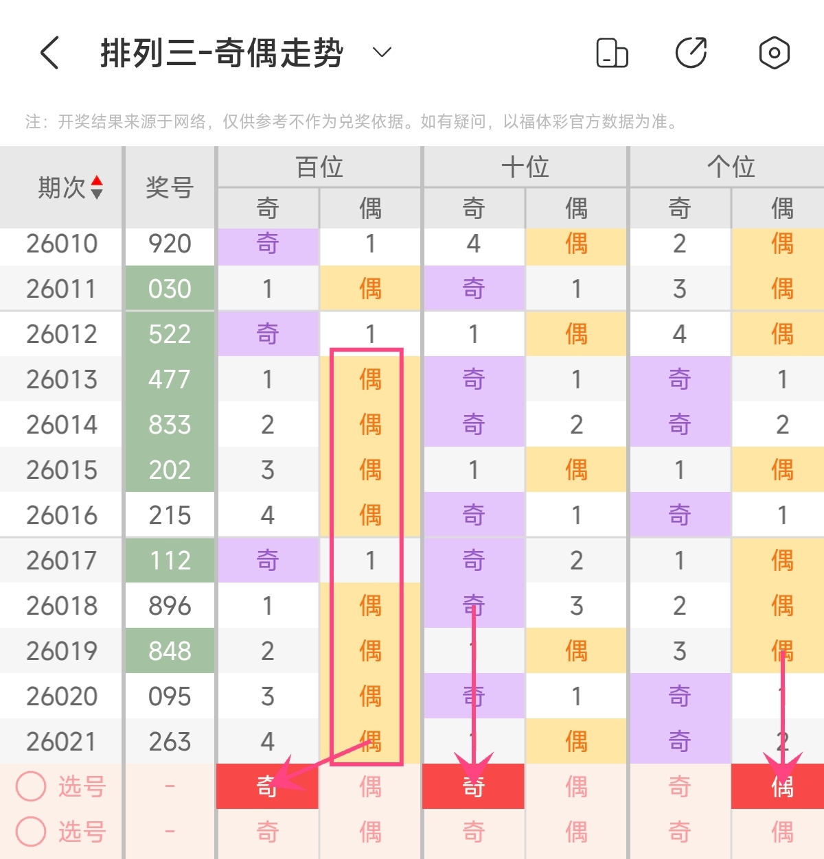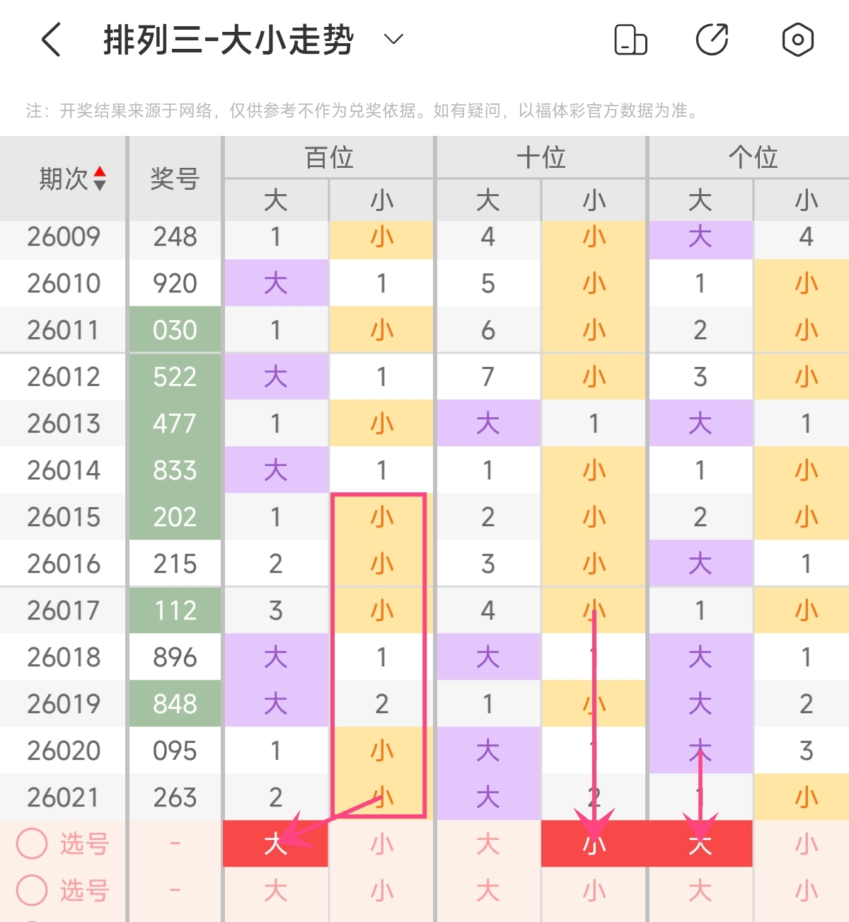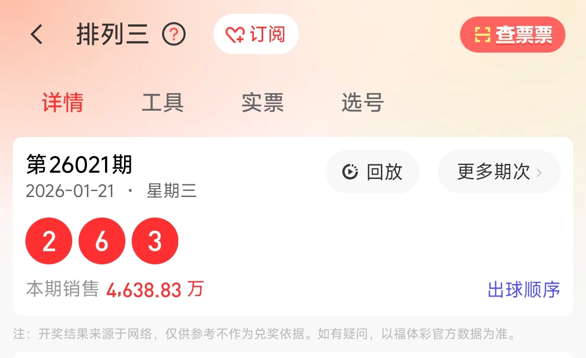 首先让我们回顾一下上期排列三第2026021期开奖号码为263,为组六形态,大小比为1:2,奇偶比为1:2,跨度为4,和值为11。