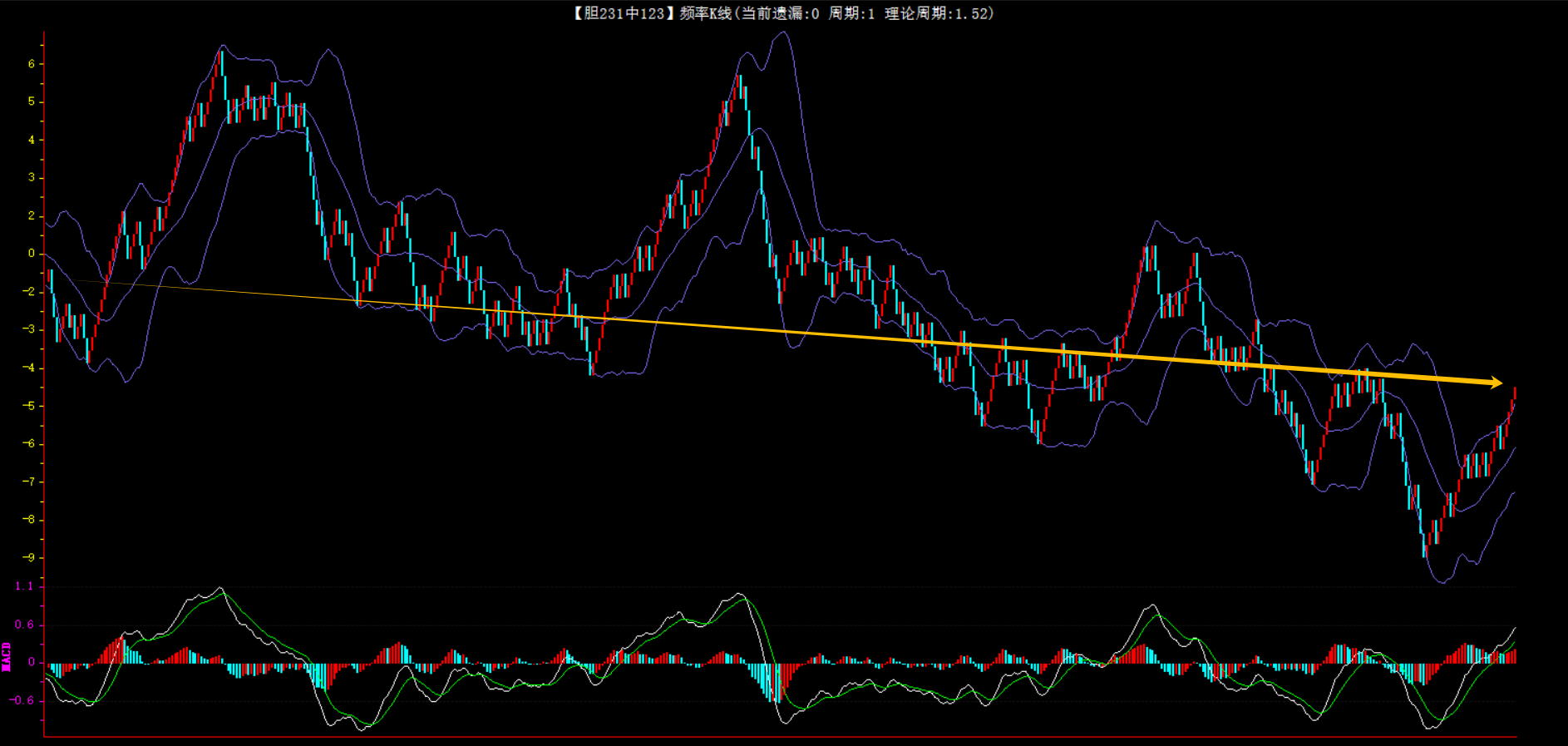 用500期的数据来看吧,趋势下行,当前开1期,本期防守,