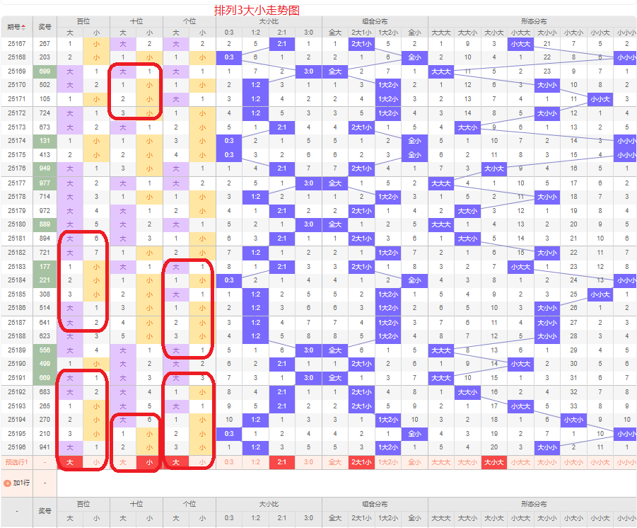 上一期012路个数比为1:2:0,是01路的号码组合,本期的号码以两路的组六组合号码为主,上期断掉2路的号码,本期2路的号码可能会出现,本期应该会有0路的号码,本期以02路的组六组合号码为主,防01路和12路的组合,侧重02路的号码组合。