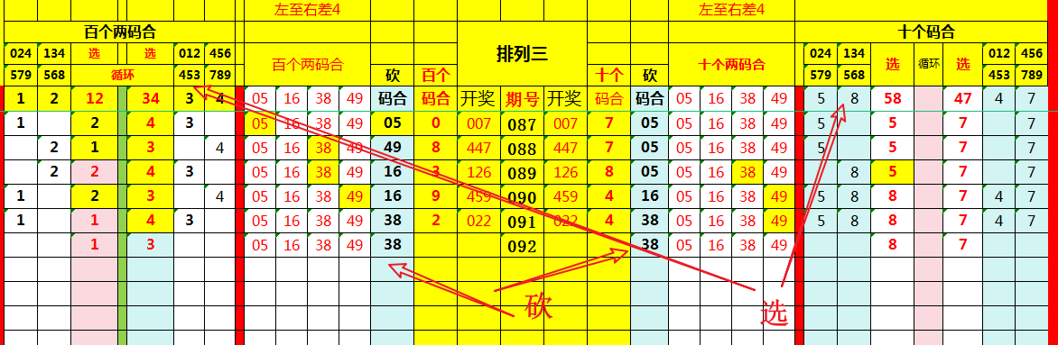 再观“两码合值”,此乃关键。其要旨在于百位加十位、十位加个位,取其和值之尾数。此步至关重要,可如沙里淘金,剔除诸多不靠谱的“垃圾组合”。 复盘数据,构建表格如(图):