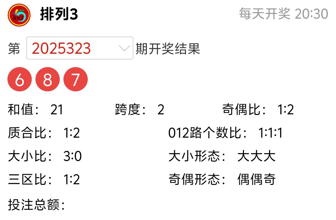 排列3第2025324期开奖号码个人分析,本期考虑关注大号奇数,金胆9号