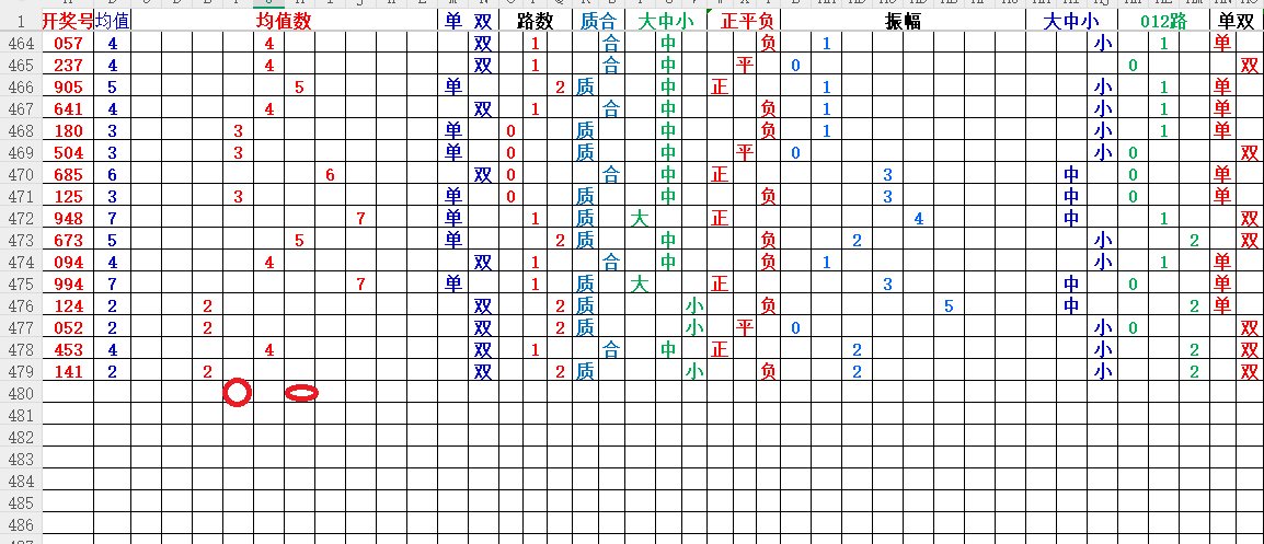 如上图1,大中小分析,均值小中大数比较好,也就是 3456 均值最好,重点:45。