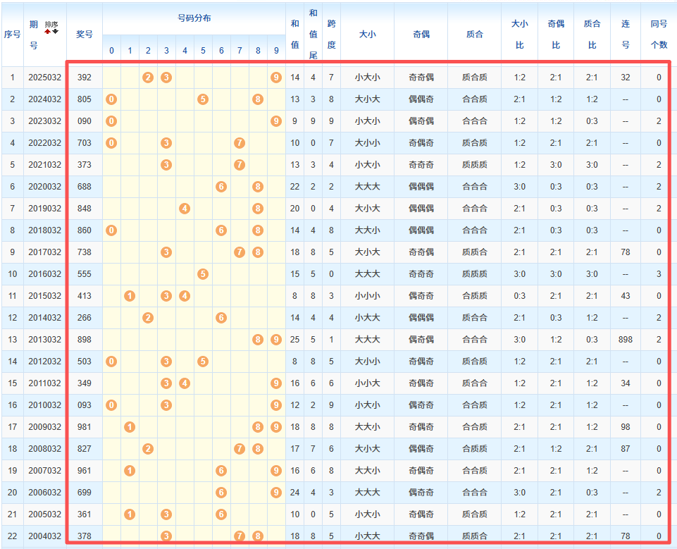 1、统计往年同期开奖号码