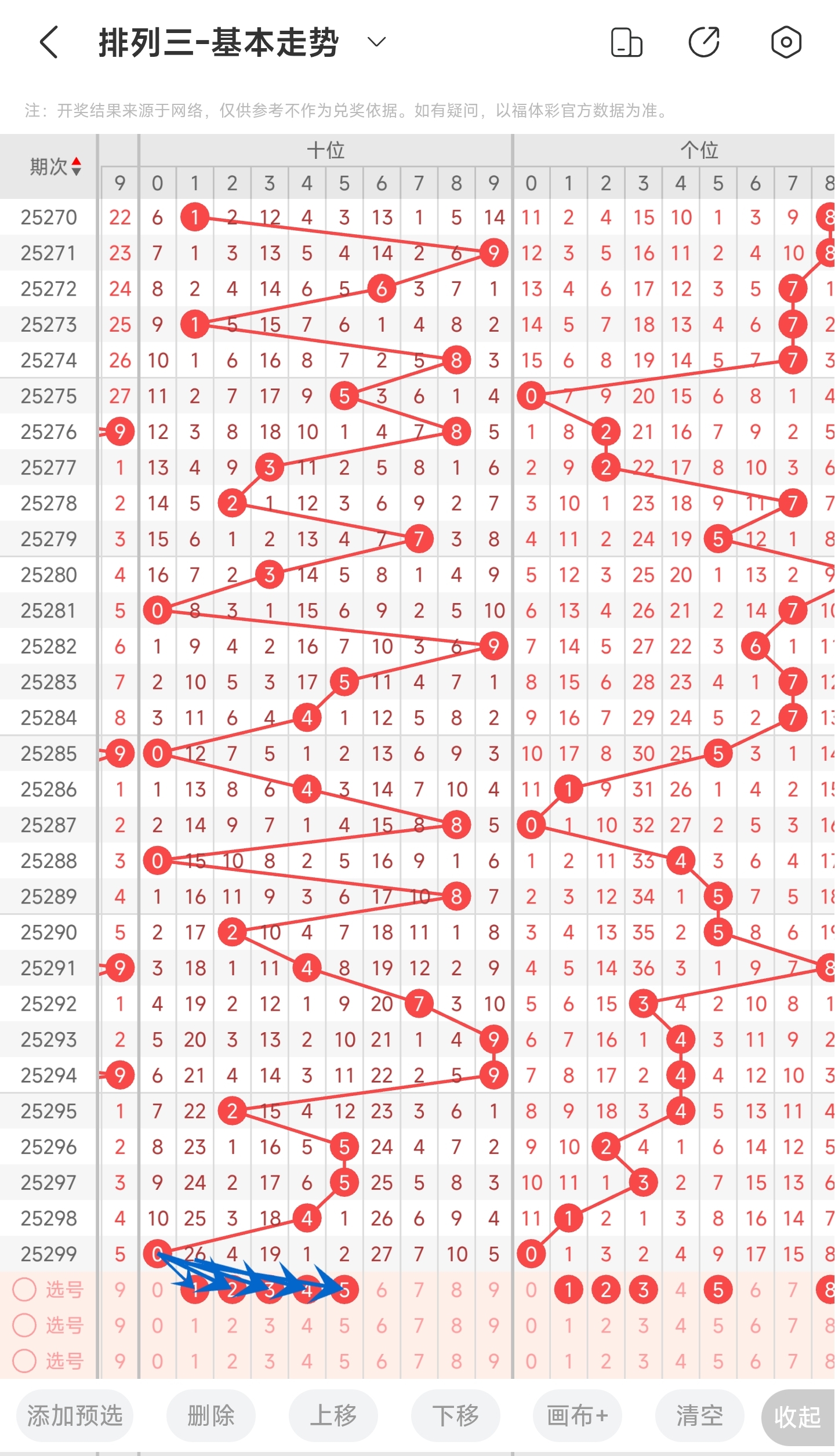 上期开出了0号球,往前一期开出的是4号球。趋势往左移动,偏移量为4,走势比较平缓。通过分析走势图,可以看到目前趋势是大概率往右的。上期偏移量是变大了一点,本期可能继续保持,但也可能又开回比较小偏移量的号码。所以本期我们主要关注中小等偏移量的号码。最后再结合冷热号和遗漏期数,我们可以关注一下1,2,3,4,5等号。综上所述本期我们推测可能会开出1,2,3,4,5等号。