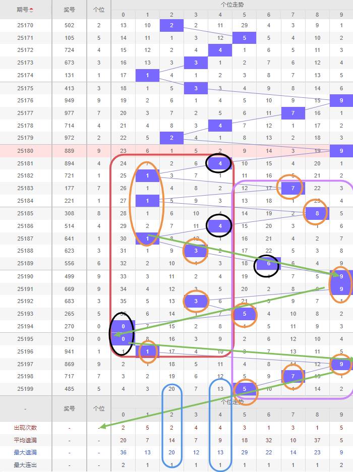 因此,排列3第2025200期个位5码推荐:0、2、3、6、8,精选三码参考:2、3、8