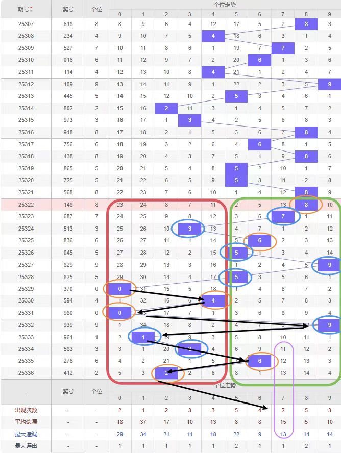 因此,排列3第2025337期个位5码推荐:0、4、5、7、8,精选三码参考:4、5、8