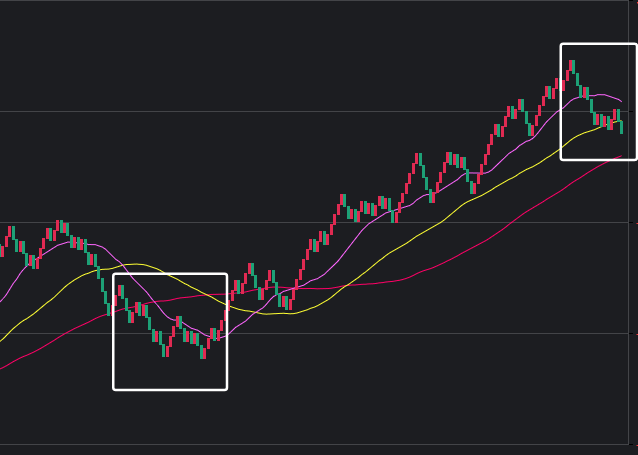 可以看到一些规律,在白框中,如果一致,那么接下来这些跨度也会出。