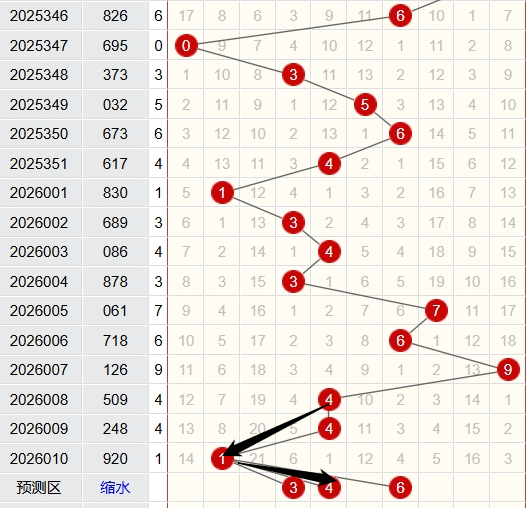 上期和尾为1,近5期和尾开出情况:第26006期开出6,属于偶数,0路号码,水属性;第26007期开出9,属于奇数,0路号码,金属性;第26008期开出4,属于偶数,1路号码,金属性;第26009期开出3,属于奇数,0路号码,木属性;第26010期开出1,属于奇数,1路号码,水属性;