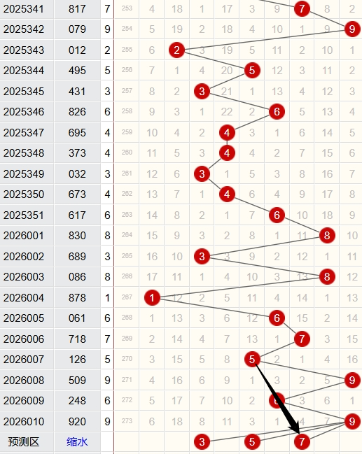 上期跨度为9,近5期跨度开出情况:第26006期开出7,属于奇数,1路号码,火属性;第26007期开出5,属于奇数,2路号码,土属性;第26008期开出9,属于奇数,0路号码,金属性;第26009期开出6,属于偶数,0路号码,水属性;第26010期开出9,属于奇数,0路号码,金属性;